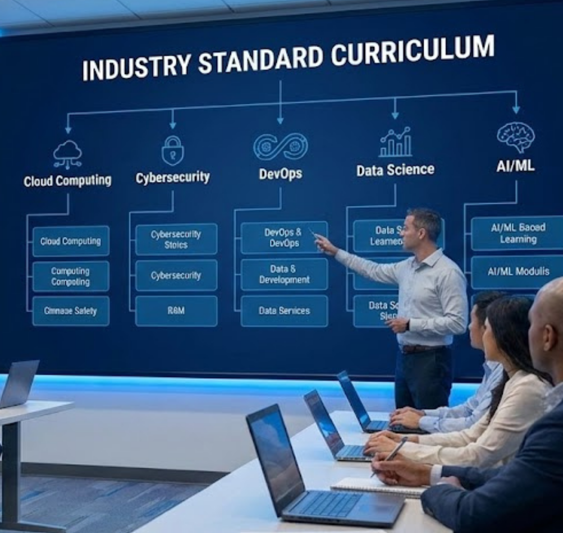 We specialize in high-demand IT technologies, primarily DevOps with AWS and Cybersecurity. We also cover essential foundational modules like Linux, Python, and soft skills training for interviews.